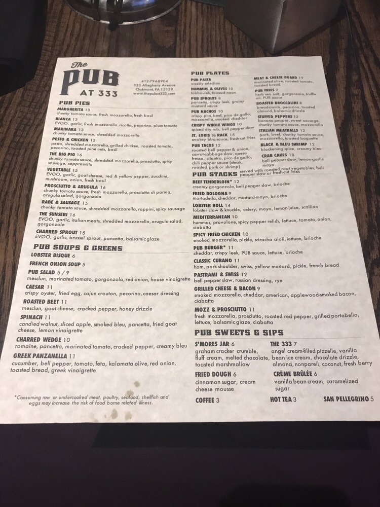 Welcome to The Pub At 333, nestled in the quaint Oakmont, PA. This trendy establishment brings a fresh take on New American cuisine with a focus on generous portions and flavorful dishes. The menu boasts eclectic offerings, from the mouthwatering Grilled Chicken BLT to an indulgent three-cheese grilled cheese sandwich with bacon. For those seeking lighter fare, the berry goat salad and French onion soup won't disappoint.